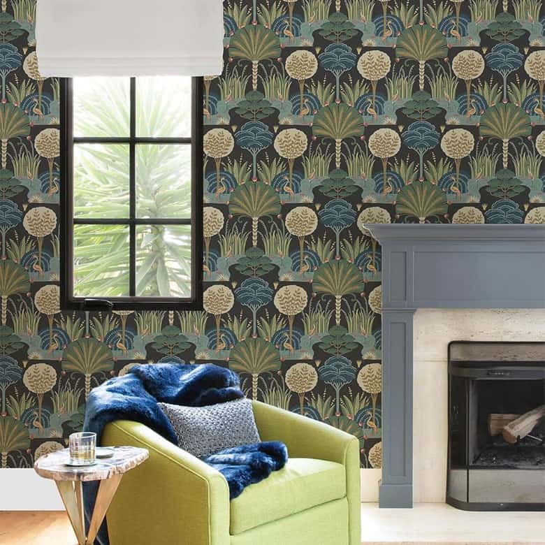 Designed by the famed stationery and home goods brand Rifle Paper Co., this sweet and feminine wallpaper is like an instant mood boost. With botanical details realized in happy hues of pink, blue, yellow, and green, it’s a great way to add a sunny atmosphere to your space.