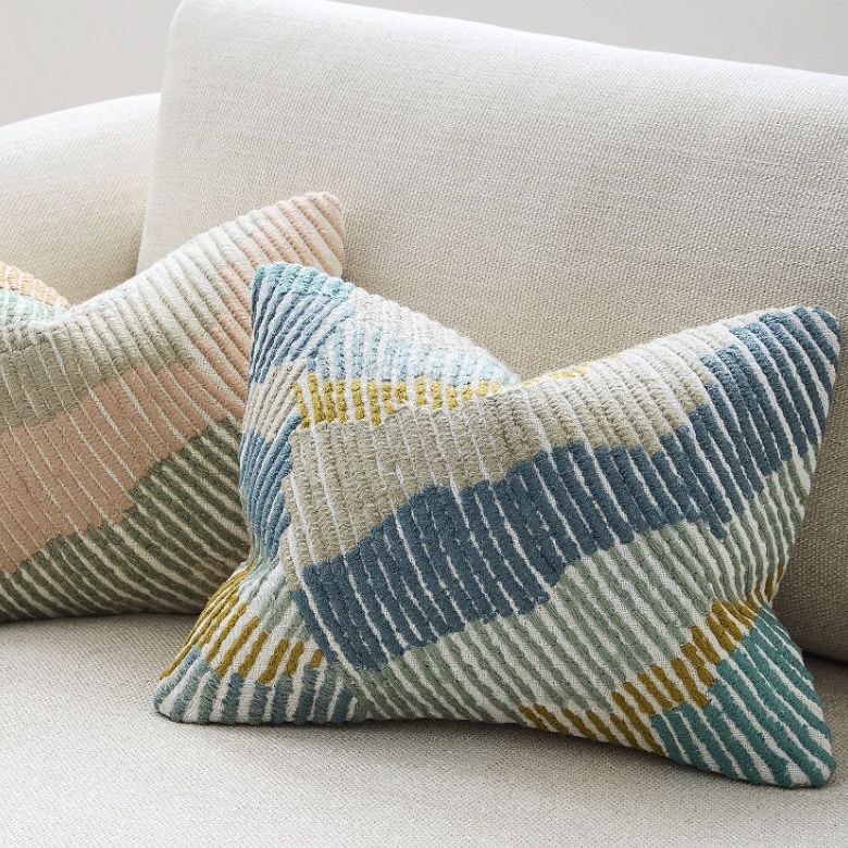 You can also mix and match different shades of blue (like navy or dusty blue) if you have more neutral-colored furniture. And lastly, don’t forget about texture! Soft velvet, faux fur, nubby boucle, or raised woven patterns can all transform a simple pillow into a style statement. Once you’ve thought all of this through, it’s time for the fun part: shopping! To help you find exactly what you’re looking for—whether that’s light blue throw pillows, blue and white striped pillows, or blue-green pillows—we’ve found gorgeous options at a variety of different price points from all your favorite retailers.