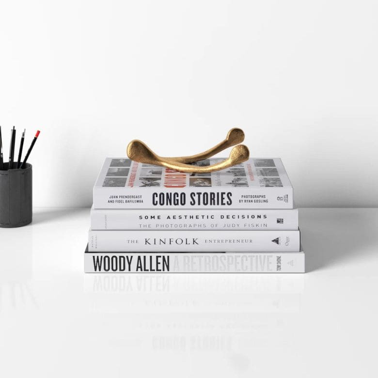 Not only will this concrete dish add a sunny splash of color to your bookshelf, it’s an ideal vessel to hide away keys, jewelry, coins–really, any small objects you want to corral. We love that this catch-all is made from recycled materials, so it’s better for the environment, too.