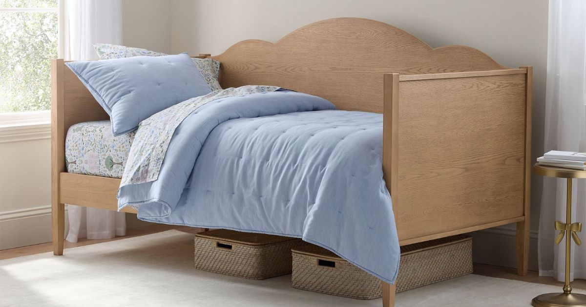The Willow daybed starts at about $799 for the clean, classic twin-size frame, and you can choose an option that includes the mattress if you want an all-in-one buy. If you need a second sleep space, the matching Willow trundle runs about $399 and you’ll need a separate mattress for it since that part is sold individually. It’s a lovely pick for kids rooms or light, airy guest spaces where you want a sweet look up top and the ability to instantly turn one bed into two when company arrives.