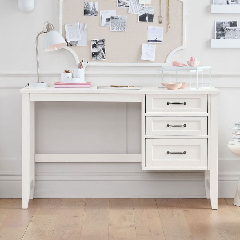 This desk maximizes its footprint. It tucks nicely into an ample bedroom corner, offers plenty of storage, and provides access to lots of wall space above for hanging art projects and inspiration boards.