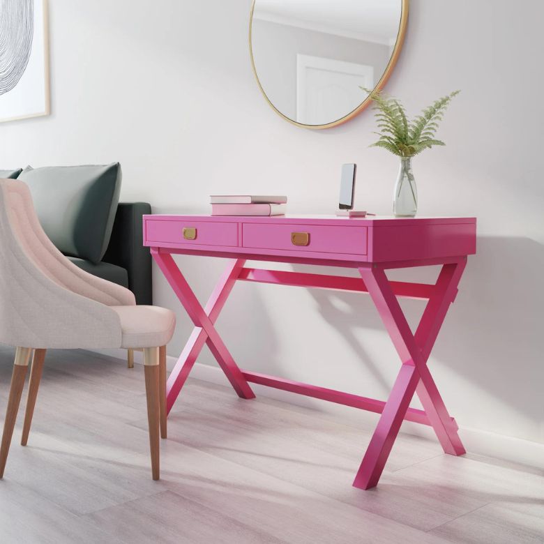 For the child who loves color, this simple desk makes a big statement and has enough room for both writing with pen and paper and typing on a laptop.