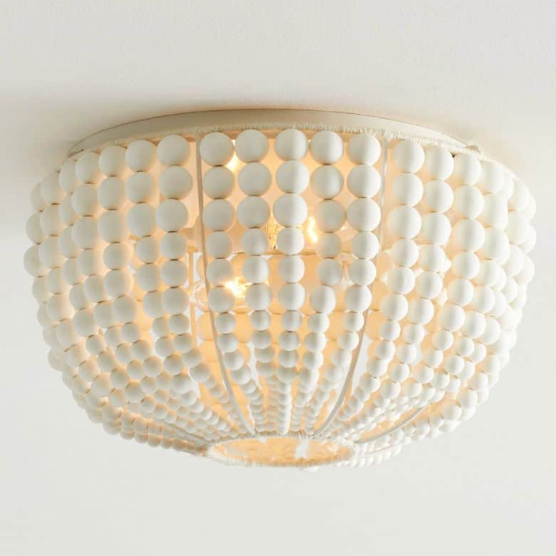 This beautiful flush mount light fixture has undeniable charm. It’s made with hundreds of handcrafted wooden beads, each one unique. It’s also compatible with a dimmer switch, making it an ideal selection for your guest room or bedroom.