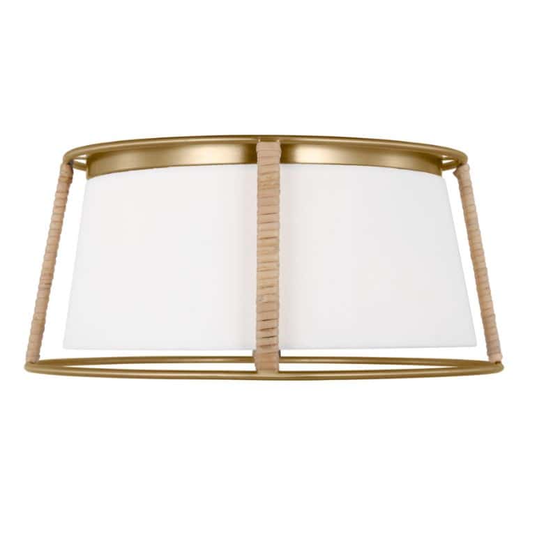 Another effortlessly stylish Drew and Jonathan Scott design, this stunning flush mount light made of mixed materials creates an eye-catching focal point in any room. The metal frame is wrapped in rattan and topped with a wide linen shade. Hang it over a dining table, in the center of your living room—really, any place you want to make a boho-modern statement.
