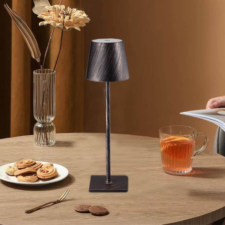 A pair of cordless table lamps is the little black dress of lighting. They’re simple, beautiful, and will work well anywhere. You can use this budget-friendly option for 15-20 hours when fully charged. Plus, it blends into any space seamlessly. There are two height options to choose from: 9.5 or 15 inches. You can also switch between the three light settings with just a touch.