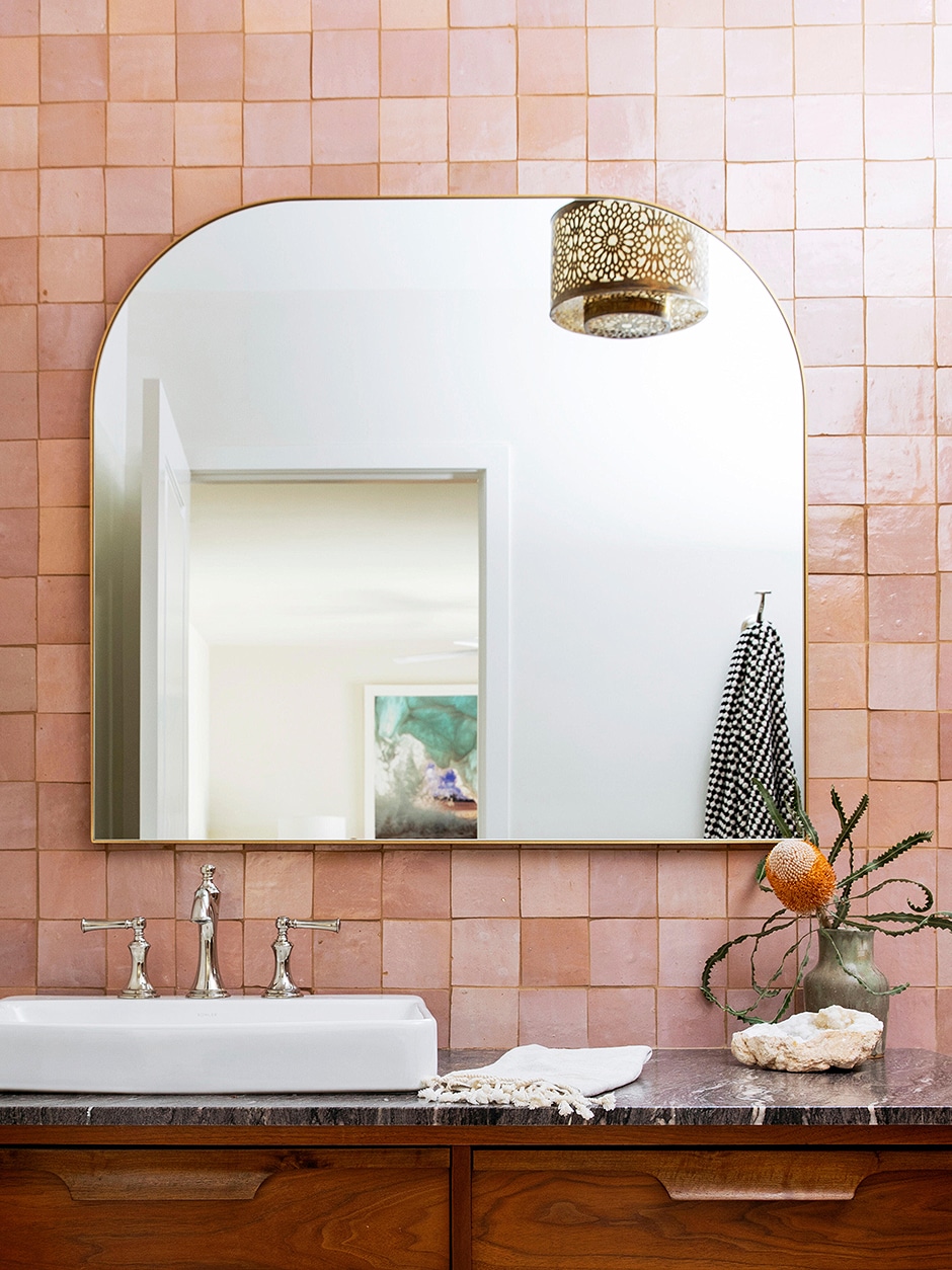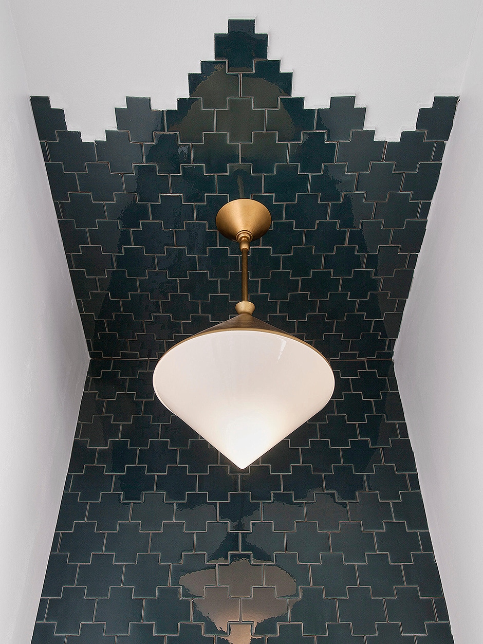 “Zellige everywhere—walls, floors, ceilings!” declares designer Barbie Palomino from Los Angeles. “The iridescence and the organic texture of this handmade tile are absolutely dreamy.”