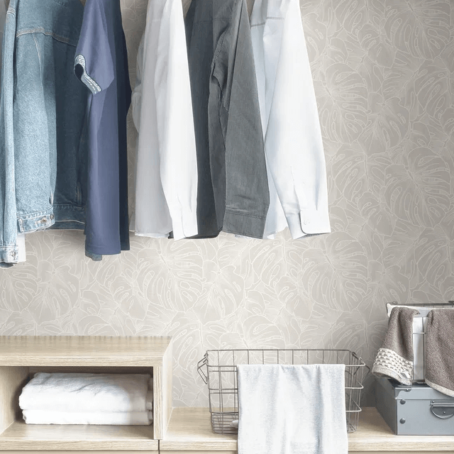 “Removable wallpaper is a beautiful non-permanent way to add some style to your home,” Drew says. “What I love about this is that anybody can do it! People say all the time, ‘I hate wallpaper; wallpaper’s terrible; it’s what my grandma used to have in her house.’ Wallpaper can add a stunning look to a space—it can define a room; it can bring depth to a space; it can make it feel bigger. You can also put wallpaper on a ceiling!”