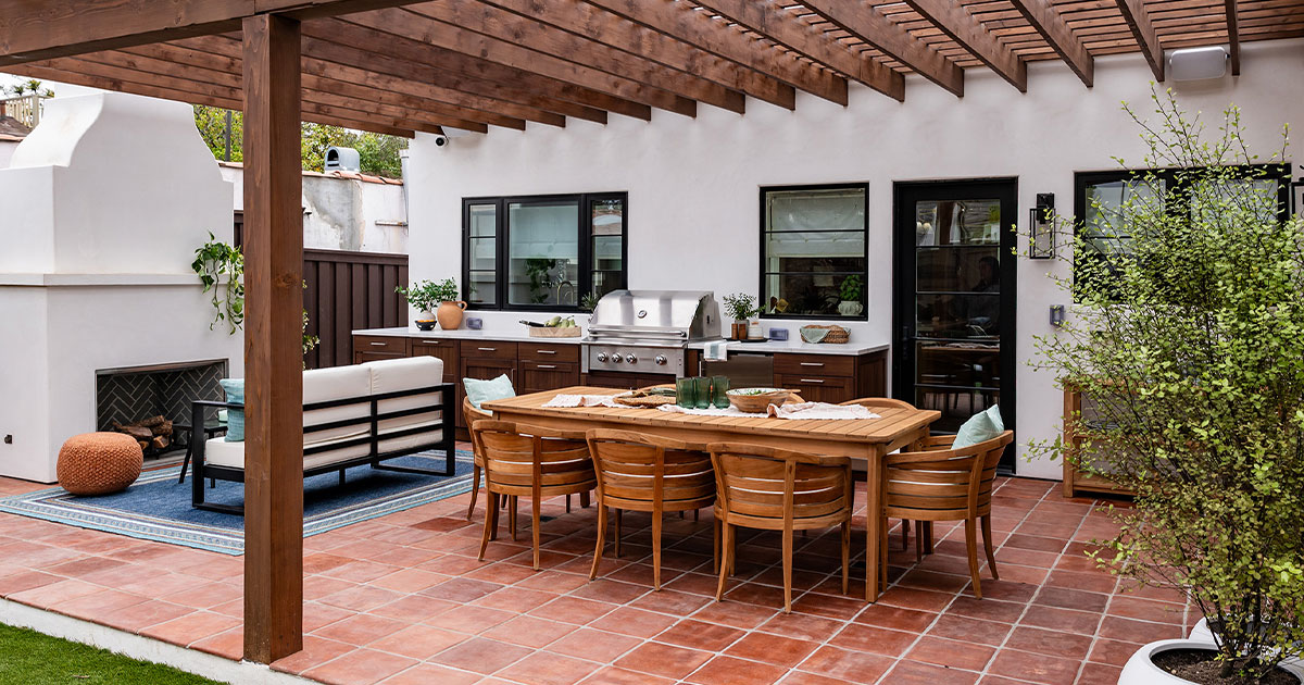 When designing their parents’ backyard at Jim and Joanne Scott’s new Los Angeles home, Drew and Jonathan wanted to make sure they made the space exactly what they wanted. Their parents love hosting friends and family and being outdoors, so it was important that the Bros got it right. “The number one request that our parents had in their outdoor space was somewhere that we can gather with friends and family, and just have a really great time,” Jonathan says. “So, that’s why we set it up this way—where there’s outdoor dining, there’s an outdoor lounging area, and an outdoor kitchen.” They certainly hit the nail on the head! Jonathan is walking us through exactly what he and Drew did to make Jim and Joanne’s backyard into the outdoor oasis they dreamed of, and how you can do it in your own space, too.