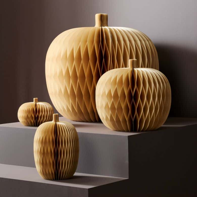 These paper pumpkins will bring a playful pop to any living room setup. They’re the perfect blend of modern, chic, and cozy fall vibes. Plus, they’re easy to store and reuse year after year, so they’ll quickly become a festive favorite. Arrange them in different sizes on your coffee table or mantel for a playful fall look.