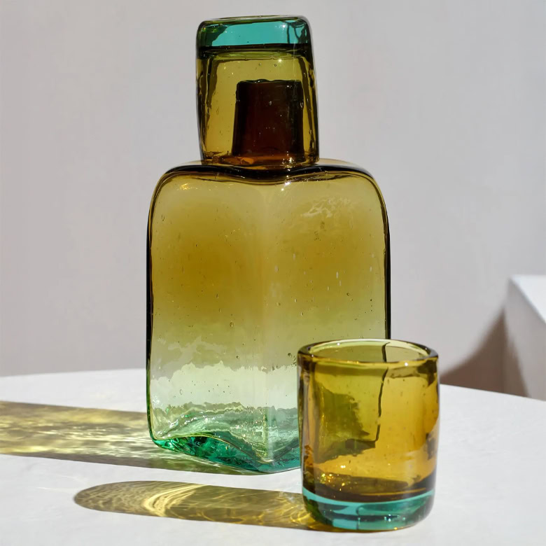 MagdaMadeCo Hand Blown Recycled Glass Carafe and Tumbler Set