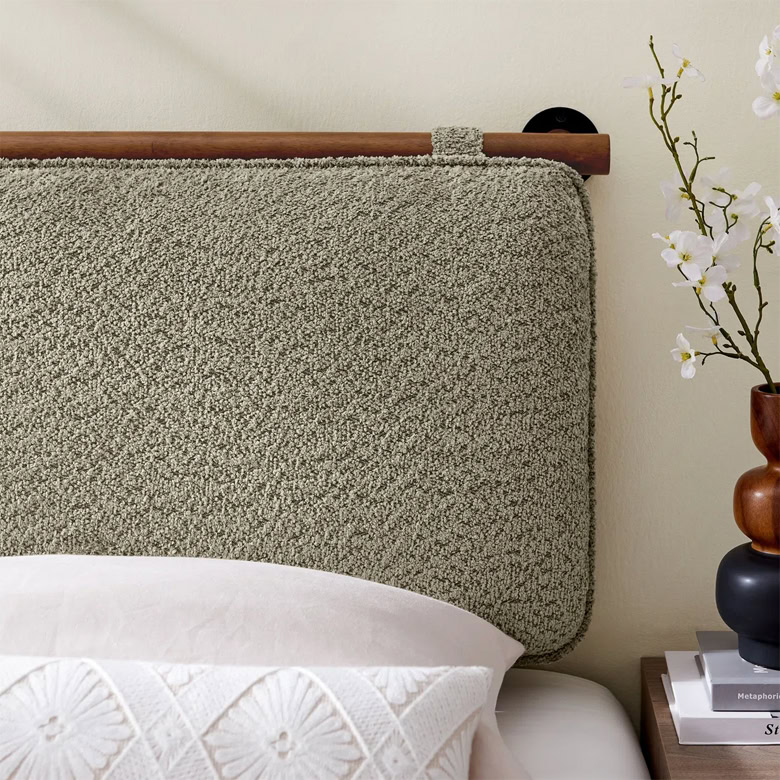 A floating headboard is an easy way to change the entire feel of your guest room without buying a new bed frame. With its cozy, curved silhouette, this wall-mounted upholstered design adds instant warmth and texture while hanging neatly on the wall. Try pairing it with striped linen bedding to add pattern, or layer in different textured pillows to play up the comfortable look.