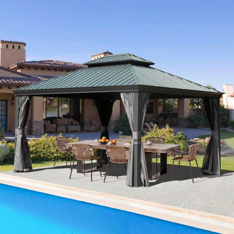 A grill is great, but why stop there? Outdoor kitchens are a way of life, especially in warm climates, where sultry summer days can make indoor cooking unbearable. Though you can certainly splurge on a poolside kitchen with Sub-Zero appliances and marble countertops, it doesn’t have to be so costly or spacious. To keep grill-worthy dinner ingredients (and a few brews!) chilly, invest in a mini fridge designed to withstand the elements. And a sturdy butcher block table can be used as both a prep station and a dining spot.