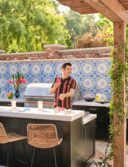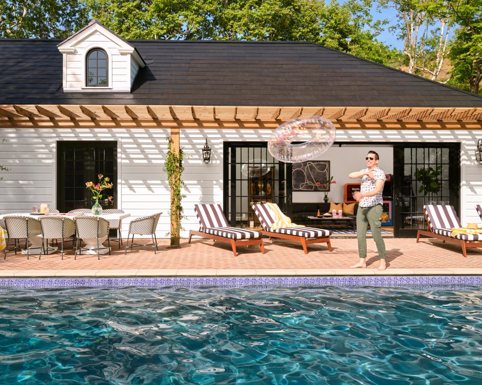 Given the odd shape of that side of the house, its construction required a little architectural sleight of hand, namely building out a new section to even it out. “Jonathan knows whether an idea is practical or not,” Zooey says. “And he knew just how to turn this patio on the asymmetrical side of the house into a solarium.”