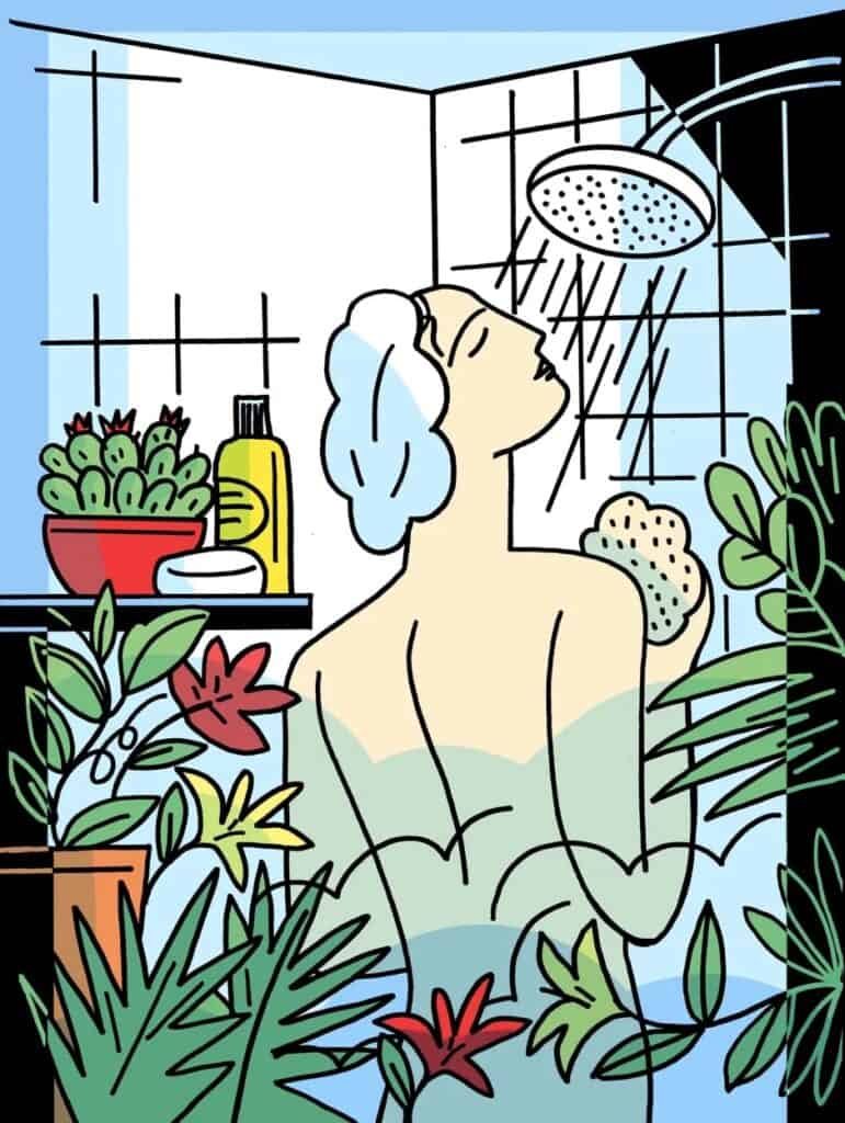 Think about it: With tiled walls, a drain, and a built-in water source, your shower is basically a ready-made greenhouse—so why not treat it like one? Turn your shower into an indoor oasis by installing a few pretty hanging or potted plants that thrive in low light and humid conditions, like ferns, spider plants, and orchids. Don’t have a green thumb? Take a page out of L.A.–based designer and lifestyle blogger Breegan Jane’s playbook and mix a grouping of faux plants in with a few real ones. “To fool the eye, I always look for real plants that are a little waxy,” she says with a laugh. “That way, it seems cohesive.”