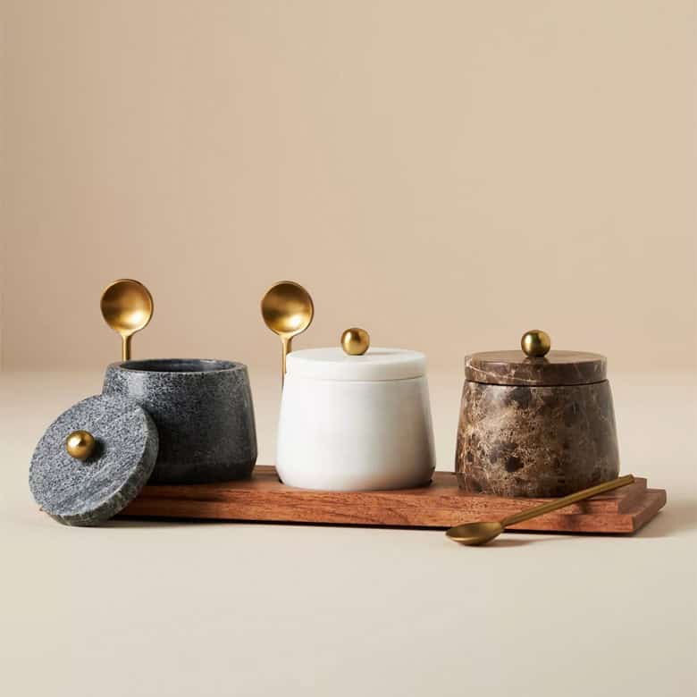 Dish racks, paper towel holders, soap dispensers—these heavy-use pieces are always out on the countertop, so it’s worth investing in versions that are pretty and practical. “It might seem silly, but I have a Carrara marble paper towel holder that I love so much” says Breegan Jane. “The stand-up style makes it easy to slide towel rolls on and off, and it just looks like it belongs in my kitchen.”