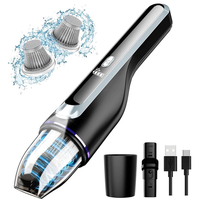 This handheld car vacuum cleaner features a washable filter so the inside of your vacuum stays just as clean as the inside of your car. It also has an LED light, which would be useful to help you see into cracks and crevices.
