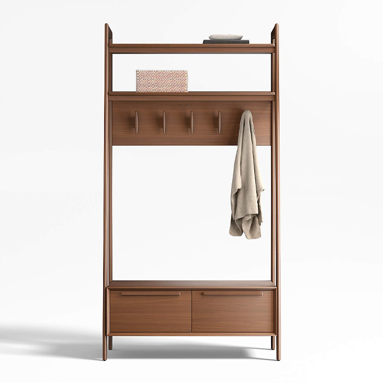 Tate Walnut Wood Hall Tree with Bench and Shoe Storage
