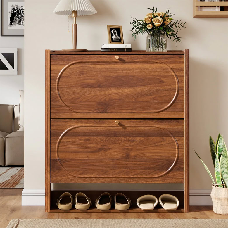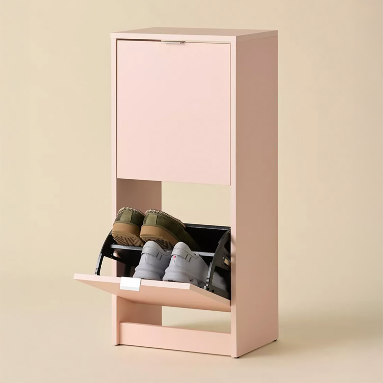 Craving a mod pop of color? This ballerina pink small shoe cabinet might be a good contender. It stands at just 16 inches wide and 35.5 inches high, so it’s especially great for tiny, compact spaces like dorms or kids’ rooms. Though it could be a welcome addition in any home when styled nicely.