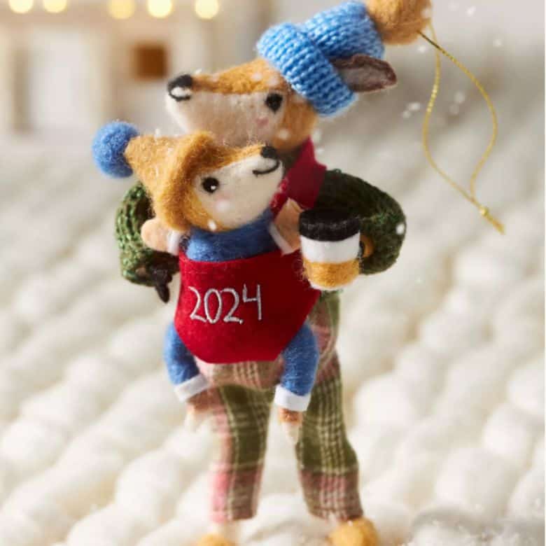 Porcelain ornaments make for lovely keepsakes, especially when it comes to recognizing a monumental occasion like the birth of a new child. This sweet rattle is made by Lenox, the iconic tabletop design company, and features hand-painted details including 24k gold accents. The front of the piece reads, “Baby’s 1st Christmas 2024,” with a pink and blue bow on either side.