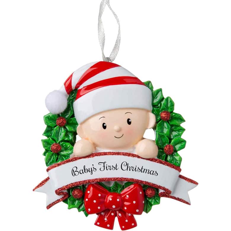 Holiday Treasures Personalized Baby’s First Christmas Wreath Ornament