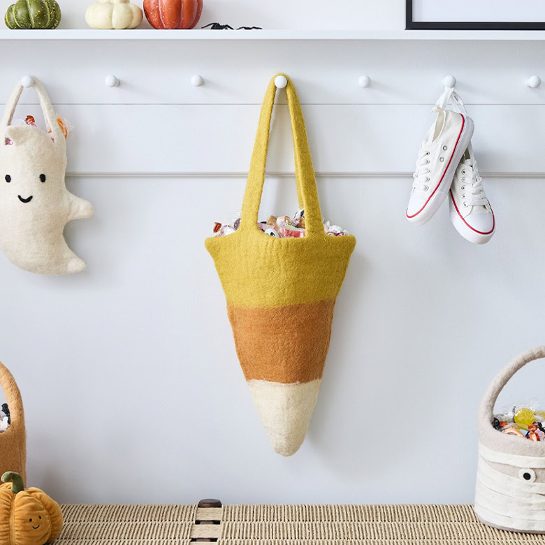 This treat bag isn’t just for your little ones! Though it will be the perfect addition to a night of trick-or-treating. However, you can also make use of it ahead of Halloween to hold toys or accessories, or anything else you want hung up and out of the way. It’s hand-felted with wool and Fair Trade Certified, so you know you’re doing good for the planet, too.
