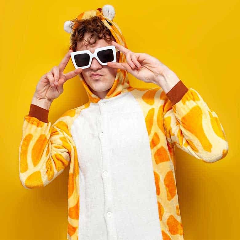 This one’s a classic and has so many interpretations. You can wear regular clothes and put on animal ears, or grab a cozy animal onesie and add sunglasses or a party hat. A party animal costume can also easily become a group or family costume, too.