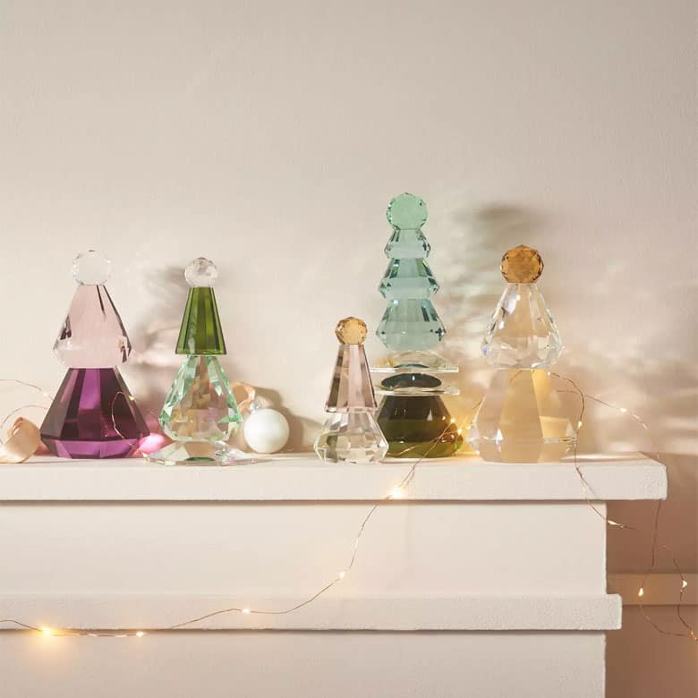 Just because you prefer modern holiday decor ideas doesn’t mean you have to eschew all the typical hallmarks of Christmas. The trick? Look for pieces that incorporate modern shapes or materials to ensure your decorations don’t feel too traditional. These graphic wooden trees feel fresh and of the moment, thanks to their extra-angular shape and vibrant shiny lacquer finish.