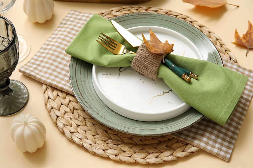 First thing’s first: You need to know how to set the table correctly for a formal dinner. Trust us, it makes all the difference! After you’ve learned how to lay out your table settings, it’s time to get into the fun stuff: decorating your holiday table. Whether you prefer to go a more traditional route with gourds, turkey decor, and pumpkins, or you want to create a more modern look, we’ve included a variety of tablescape designs to adhere to your style. Plus, we’ve also included everything you need to replicate them in your own home. The design details include gorgeous glassware, luxe linens, charming place cards, fall foliage, and more. Think of it as your “recipe” for creating a beautiful, memorable family meal. And once you’ve finished up the seasonal fun inside, don’t forget to put up your outdoor Thanksgiving decorations. Now, let’s get cooking!