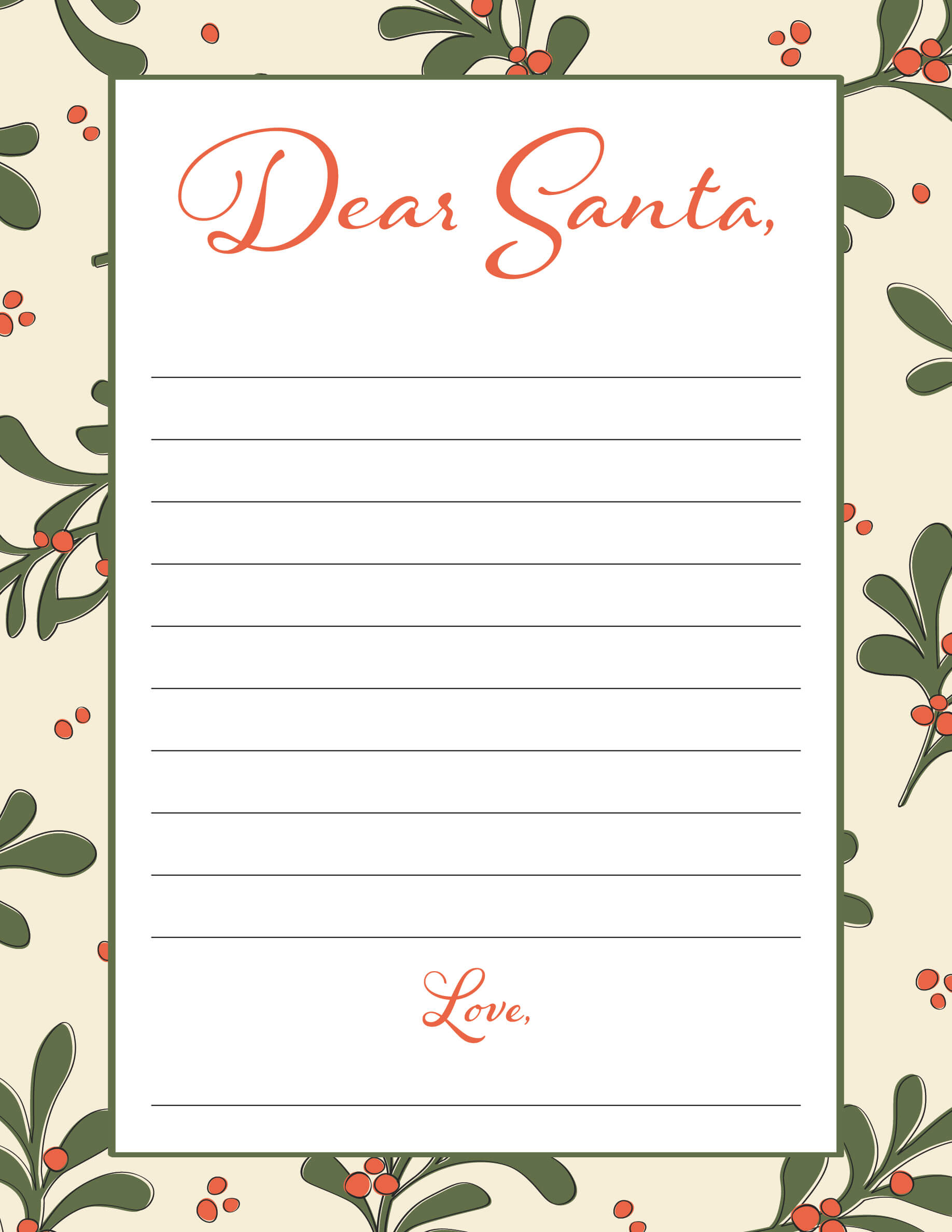 They’ll wow Santa Claus with this stunning holiday letter template! The lines make it easy for them to write out their note, and the mistletoe just adds the most adorable Christmas touch.