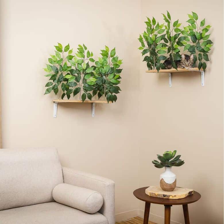 Cat owners who care about their decor will be overjoyed to receive these easy-to-assemble shelves that mix form with function. They feature fake foliage that looks stylish and gives kitties a cozy place to perch and nap.