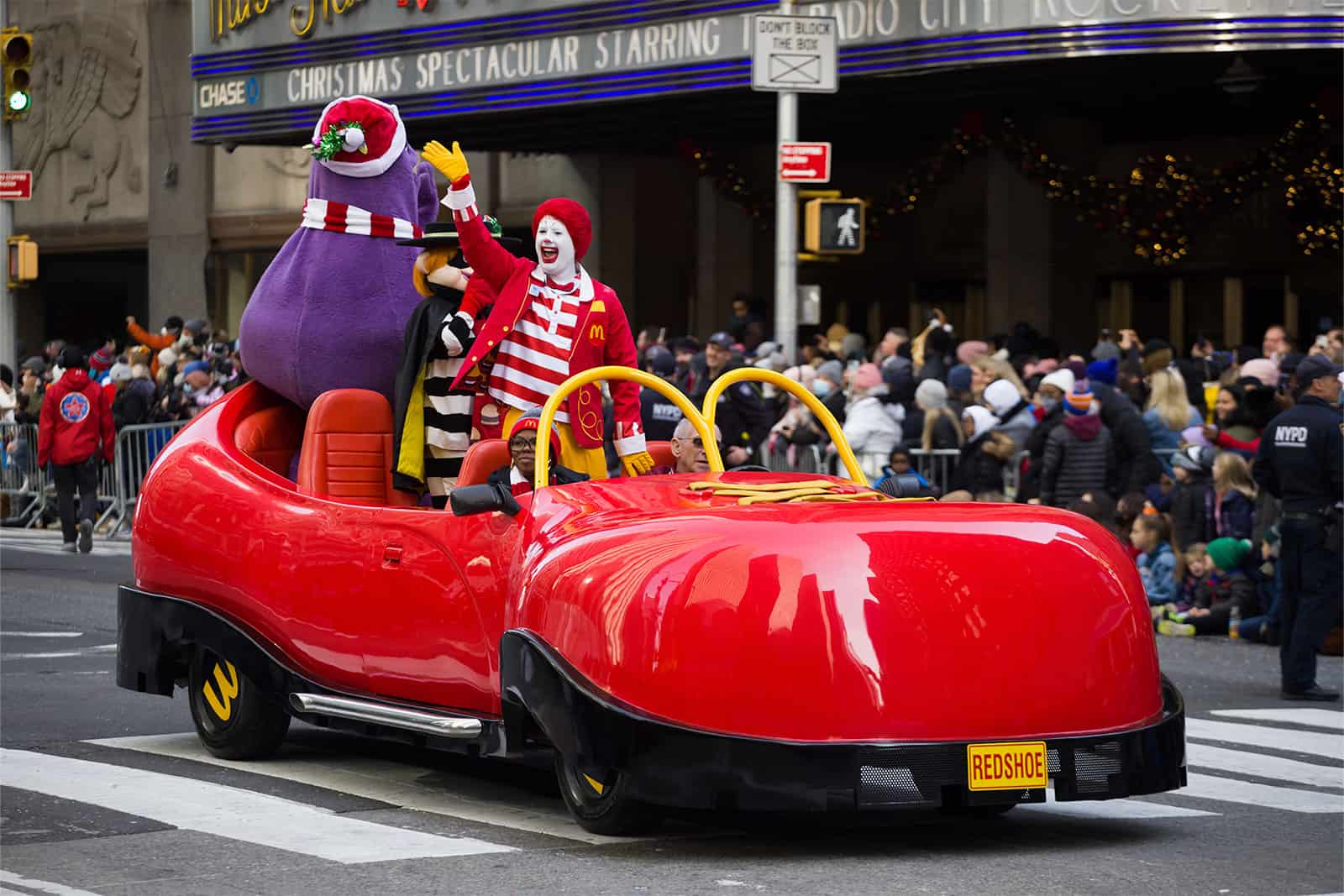 Check out Ronald McDonald, Grimace, and Hamburglar in their Big Red Shoe Car float! This is a photo from the 95th Macy’s Thanksgiving Day Parade, but it’s been part of the Parade since 2000.