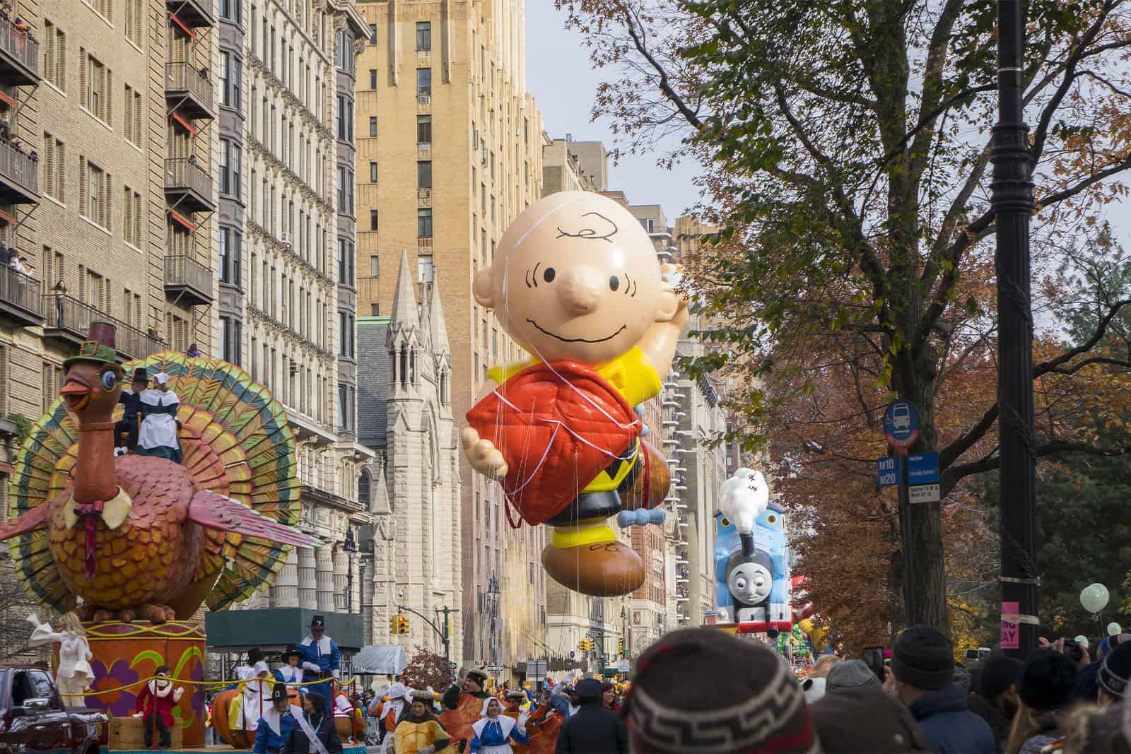Good grief! Charlie Brown has played a role in the Parade since 2002, first as Charlie Brown chasing a football, and more recently as Charlie Brown flying his red kite.