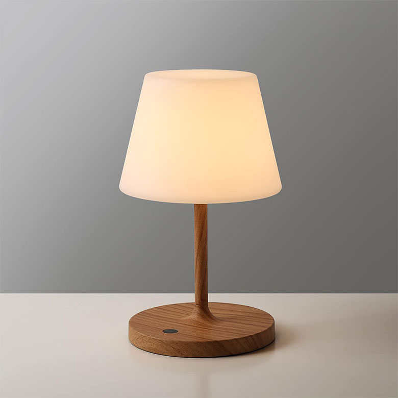 Outdoor Battery Operated Table Lamp Waterproof, 4000mAh Cordless Rechargeable, Touch Dimmable Desk Lamp, LED Night Light for Patio Camping Restaurant Home, H9.6in, Wood Grain offers a blend of modern design and practical functionality. This portable cordless lamp casts a warm white, eye-caring soft light through its snow white lampshade, creating a comfortable and romantic atmosphere for any space. Whether indoors or outdoors, its waterproof and durable construction lets you rely on it for various settings, including patios, gardens, restaurants, and camping trips.