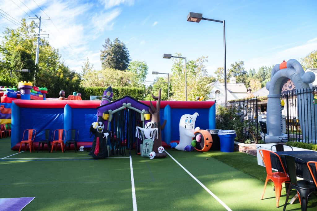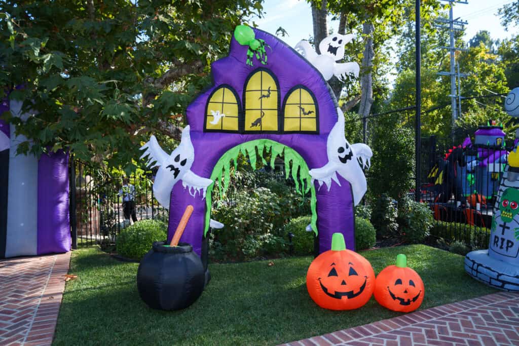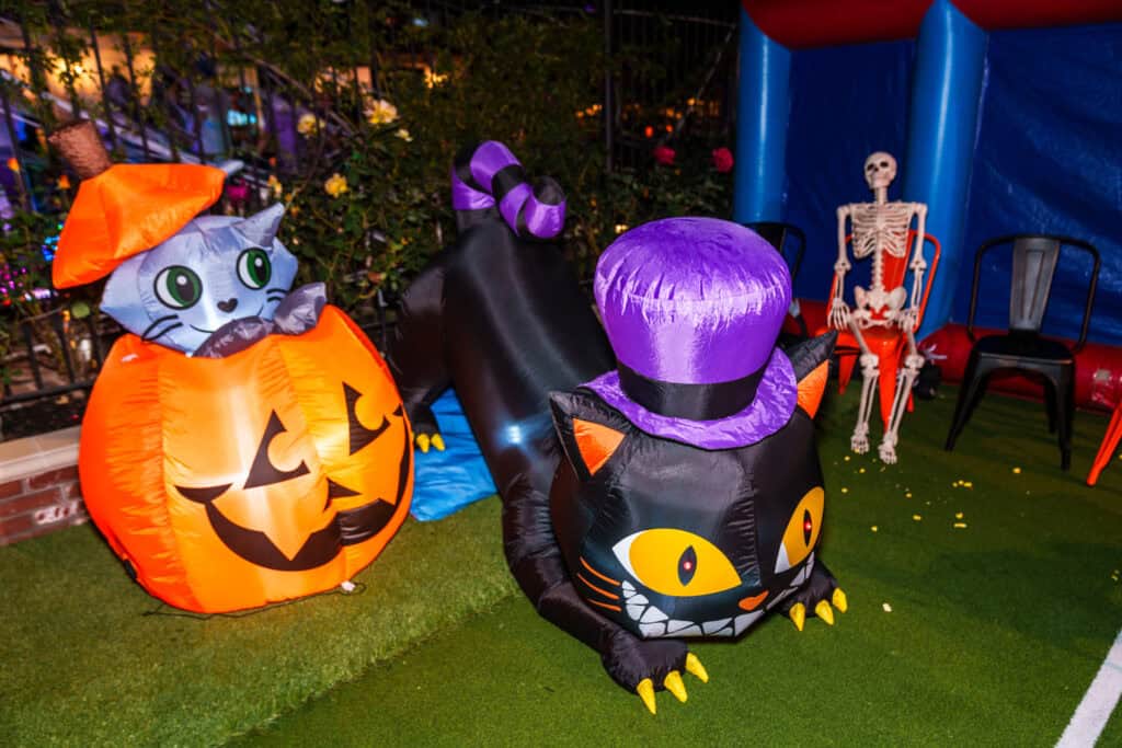 Jonathan and Zooey—who dressed up as a Real Housewife of Salt Lake City—enjoyed their festive Halloween setup with friends and family. Jonathan layered in inflatables like spooky archways, bouncy houses, and black cats for a playful backdrop that everyone could enjoy.