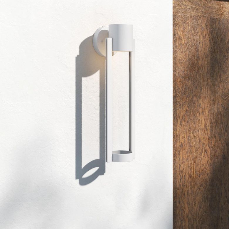 If you like modern decor, this sleek number is worth a splurge. It’s crafted from rust-resistant aluminum and rated for wet spaces. It’s slim design means it can fit almost anywhere (even in narrow spots next to doorways), and it’s compatible with dimmer switches. You can also choose from four different neutral colors.