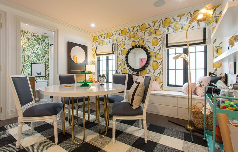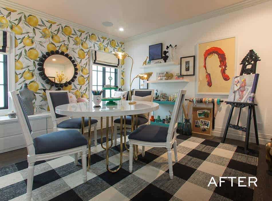 There was never really any question if Linda would be getting a craft room; the only question was how colorful it would be! Linda pulled her inspiration from some of the old wallpaper patterns she found in the house, which she turned into prints for pillows. Under those cushions: tons of storage for her many, many crafting tools and projects.