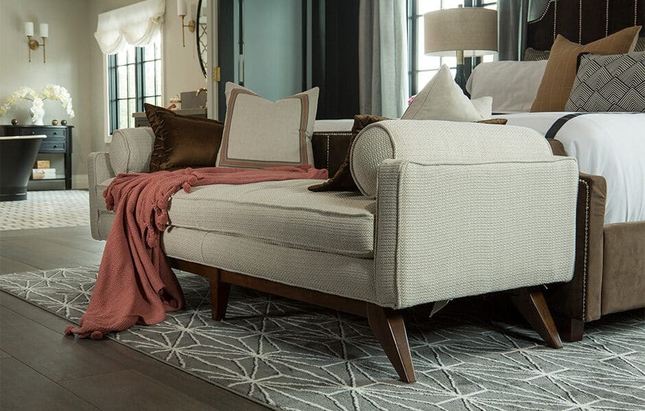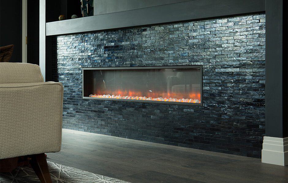 Drew had his heart set on a gas fireplace, but we weren’t able to vent it far enough across the room without adding a massive extra vent to the side of the house. Not to worry, though: we found an electric fireplace that will still keep the room nice and toasty, with a clean profile and a glamorous tile surround.