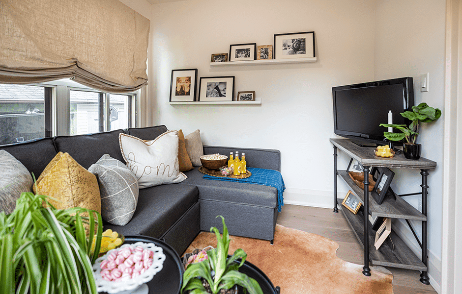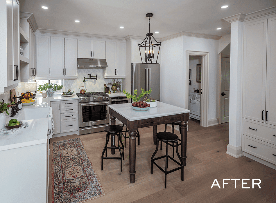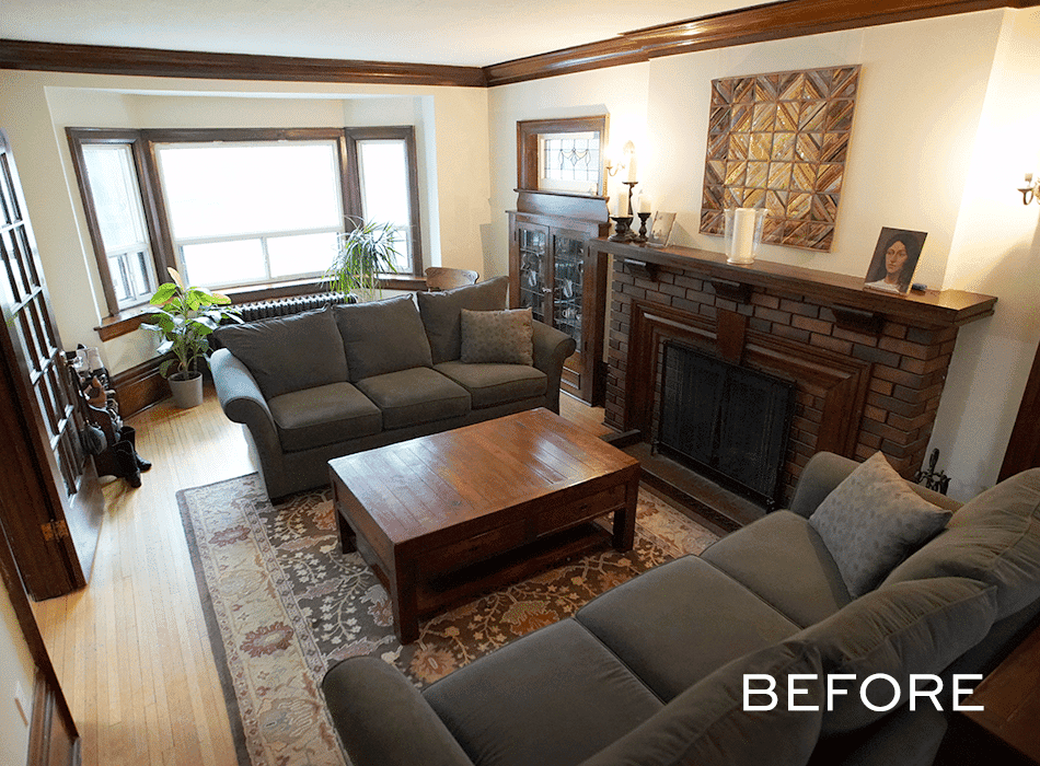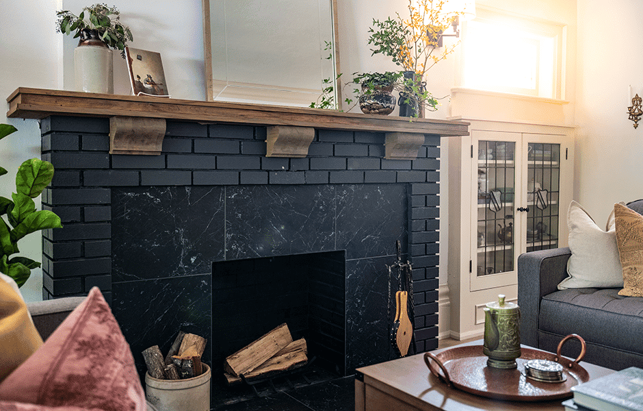 The living room is the heart of Amy and Kate’s home and family gatherings, and they described the wood burning fireplace as the room’s most important feature. Luckily, we were able to preserve the existing mantel and update the rest with a simple coat of paint and tile to cover some imperfections for a fresh new look.