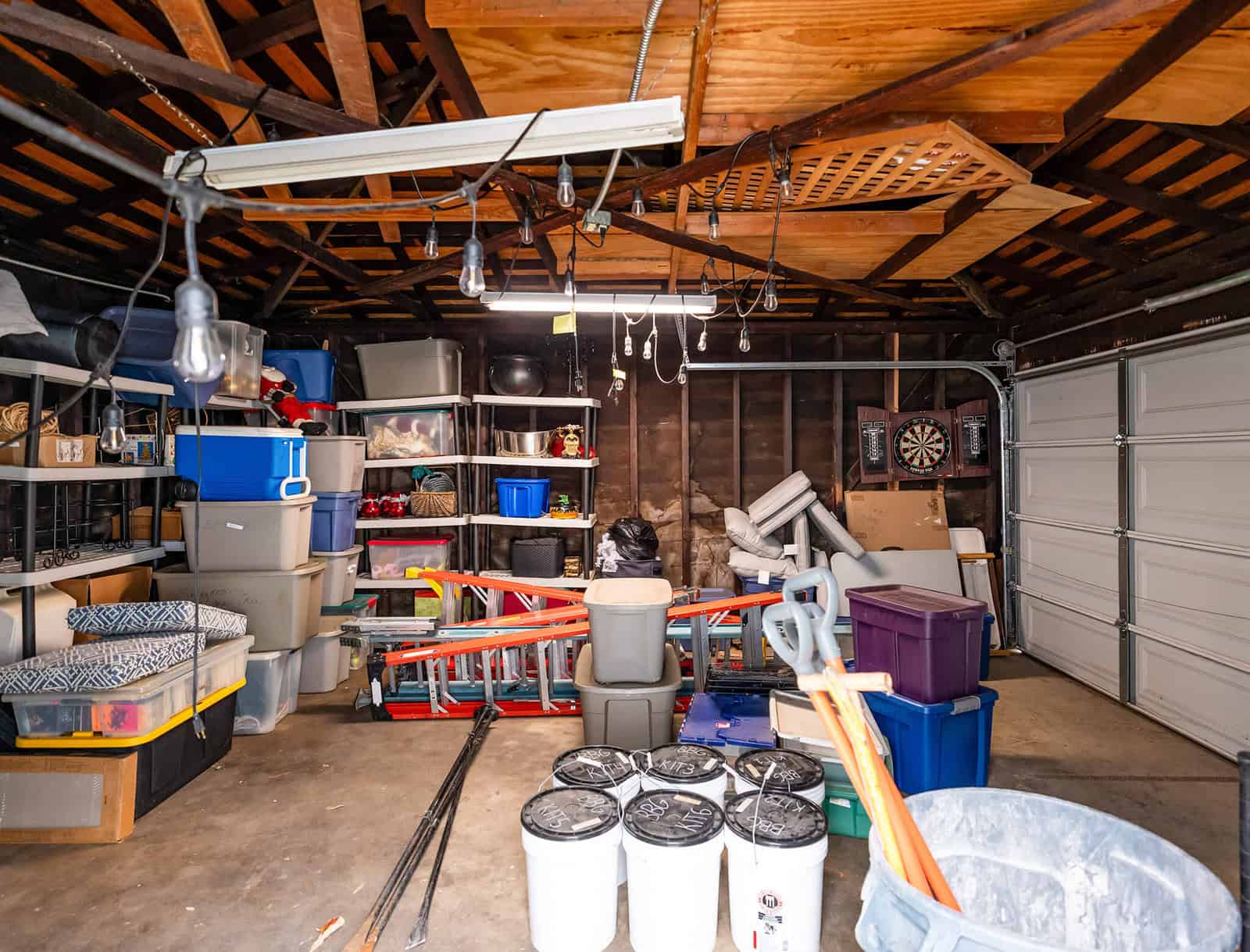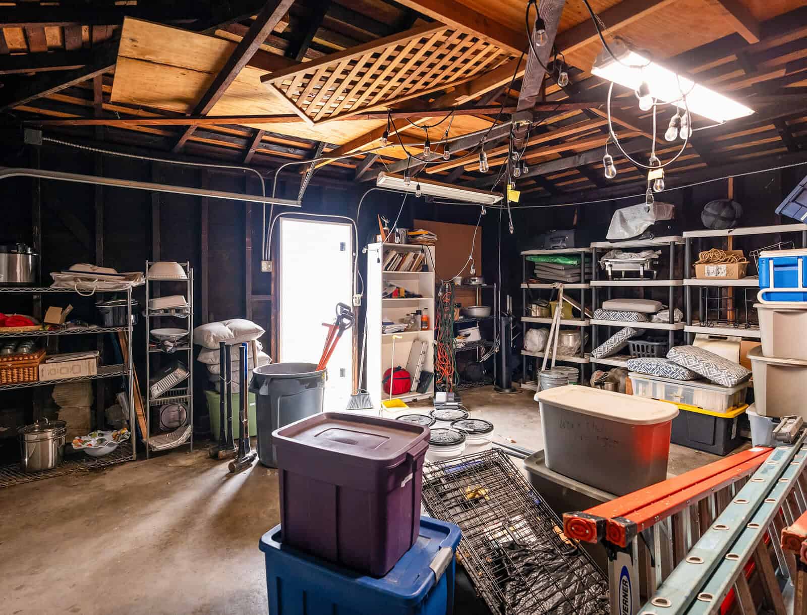To double the space so it still accommodates their storage needs, Andy, Drew, and Jonathan created an attic-like structure in the ceiling, with a pull-down door for easy access and a more organized feel.