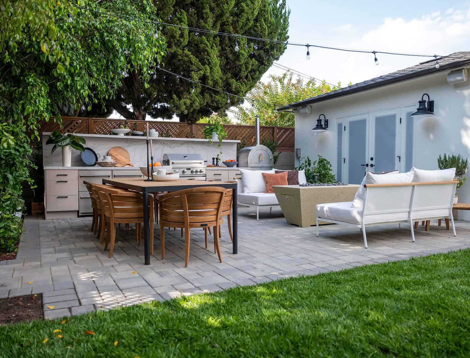 Isn’t this just incredible?! Linda’s new backyard patio is now fully equipped with its own kitchen where she can cook all her best dishes for loved ones and guests, as well as an outdoor dining table and lounge furniture to create that cozy, welcoming vibe. They even included a pizza oven, since that’s one of Linda’s favorite meals to cook!