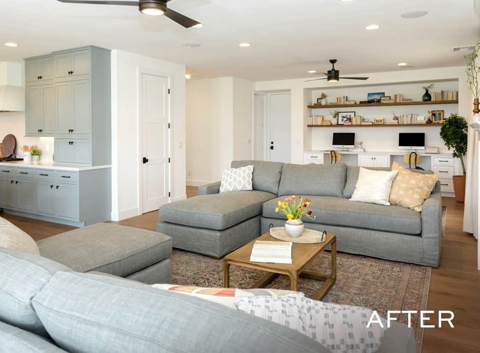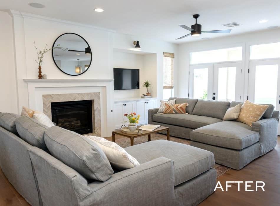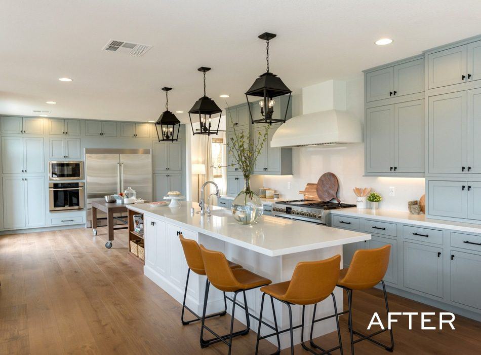 With seven kids plus a baby on the way, Austin and Cody needed a home that would comfortably fit a family of 10. Since most houses simply aren’t built for that many people, we knew that whatever we found would have to undergo some major renovations to make it work. Luckily, we found a spacious, two-floor home with a large yard in a convenient neighborhood that everyone agreed felt like home. Over the next eight weeks—we had to get the renovations done before baby number eight arrived!—we knocked down walls, overhauled the kitchen and family room, and made sure every detail served a purpose in order to give Austin and Cody a new home that’s as functional as it is stylish.