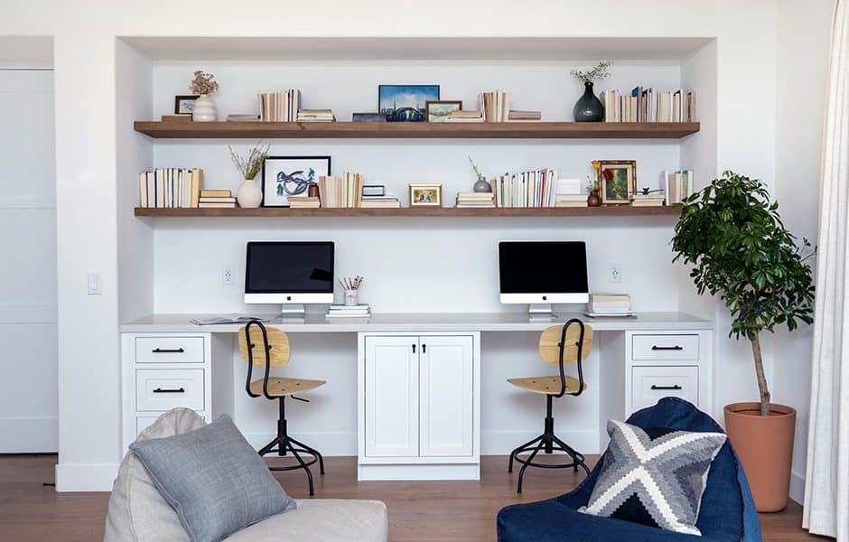 We carved out a bit of the family room to create a space for the kids to call their own. We wanted the space to be functional for both studying and lounging, which we accomplished with built-in workstations, plenty of storage space (each kid gets their cubby area) and sturdy, cushy loungers are great for doing homework or hanging out. With a homework nook like this, who wouldn’t want to study all night?