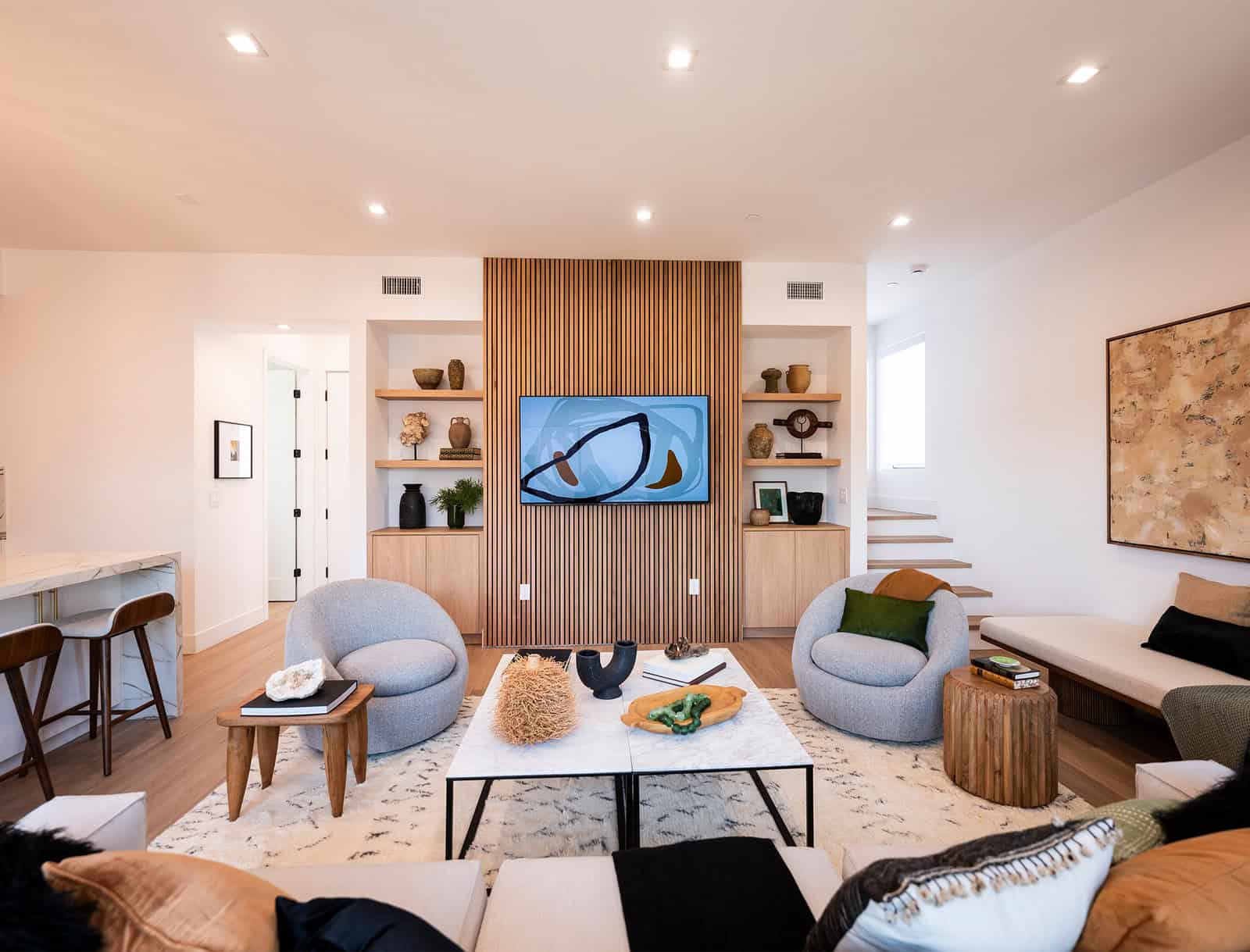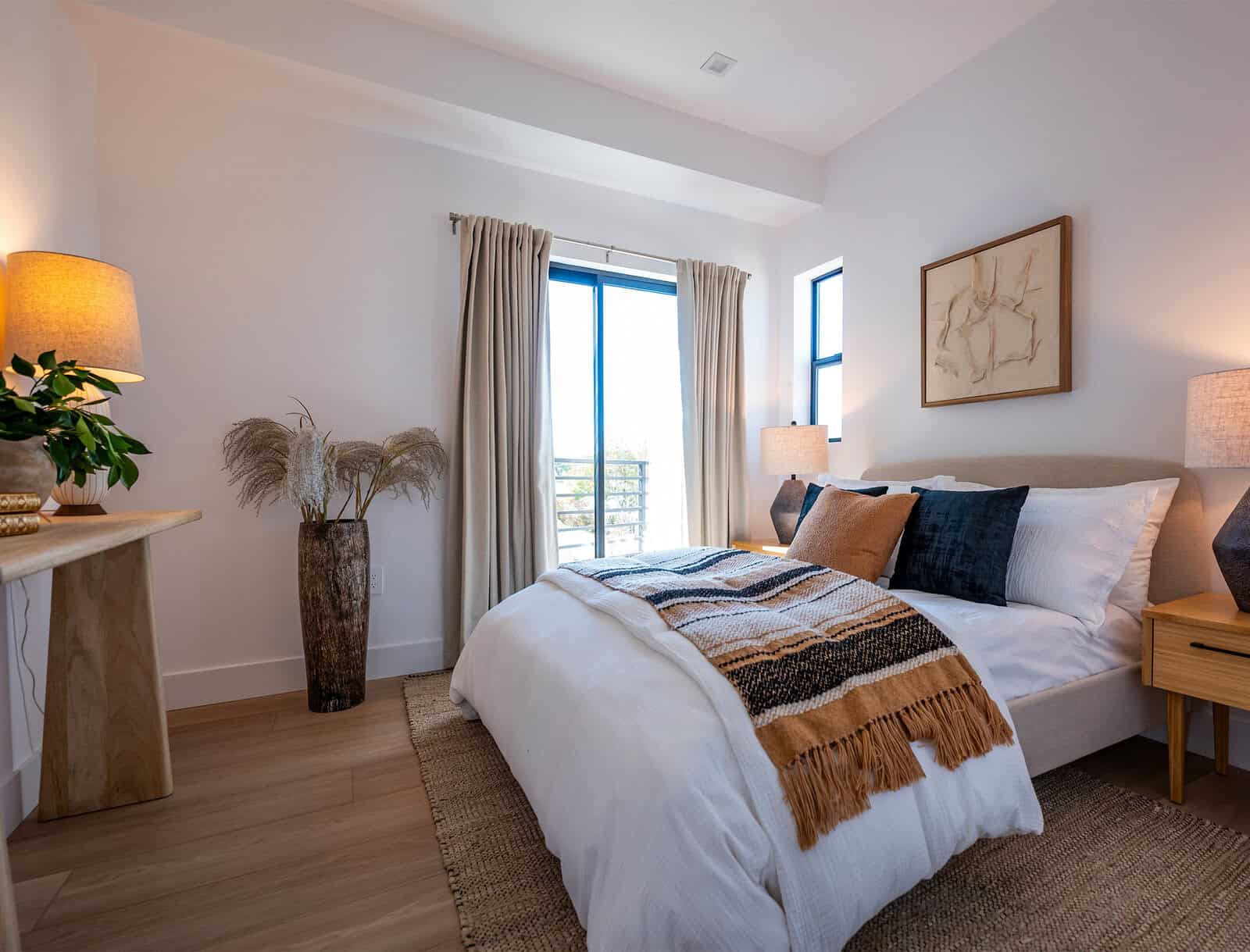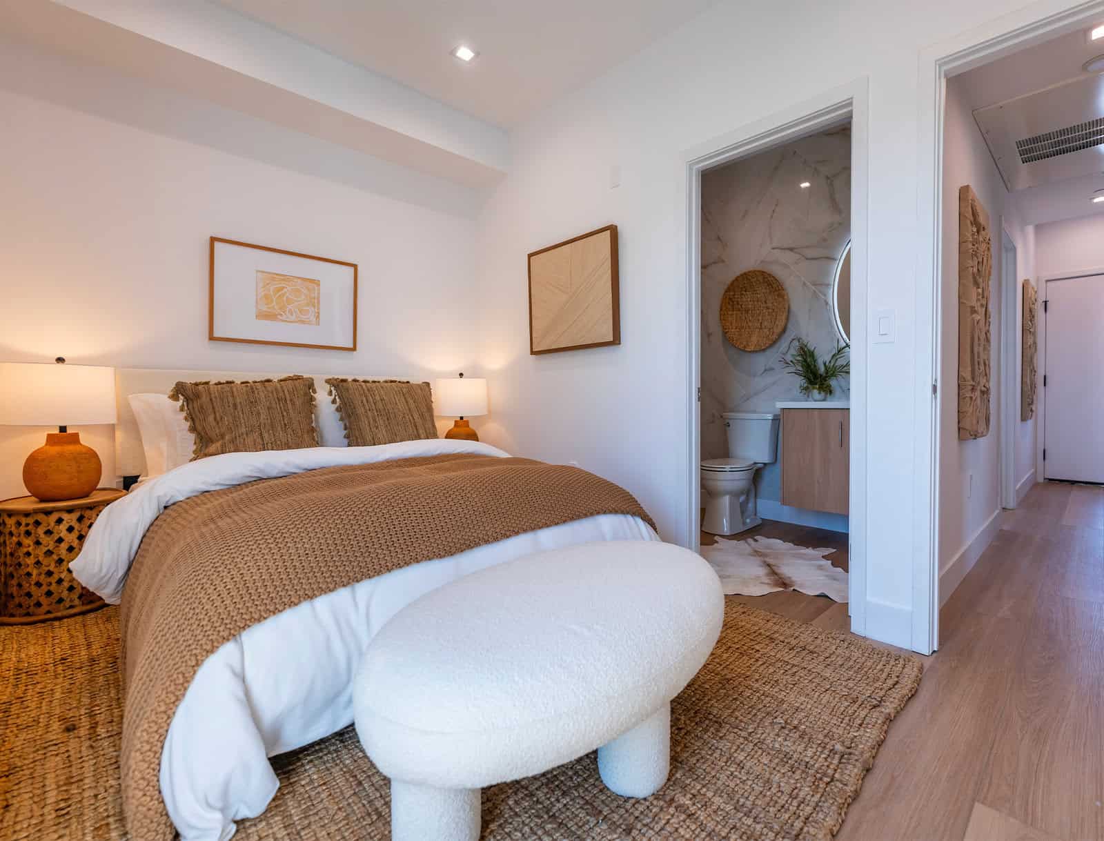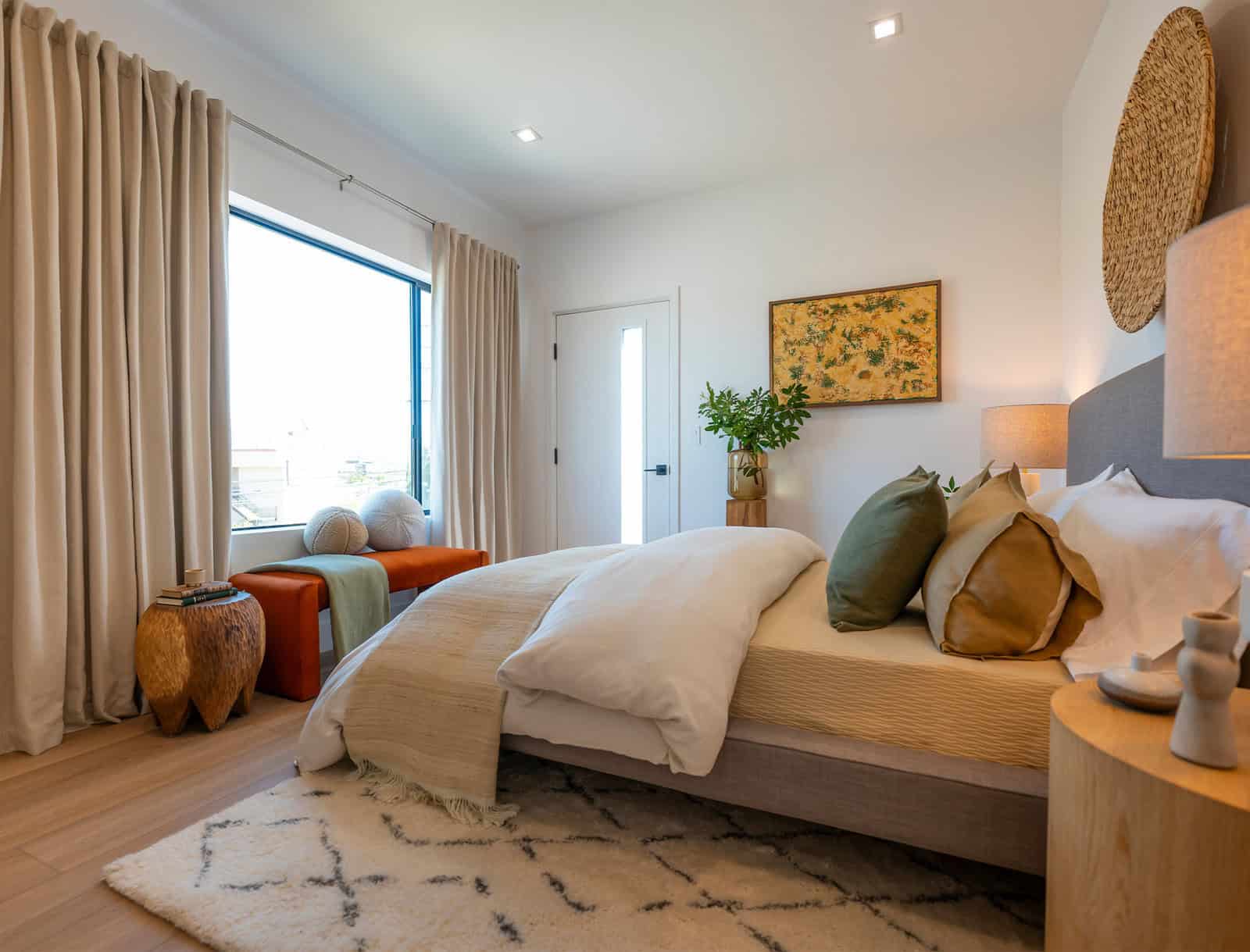 Neutral tones, textures, and artwork made each space feel like a stylish escape without looking too custom. And when it comes to finding renters and buyers, this matters! Cozy finishes and natural elements go a long way in styling a home for potential residents.