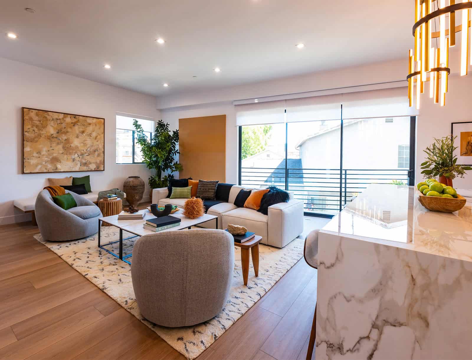 A bold, bright, and beautiful living room is the backdrop to the entire residence. Sheryl and Jasper created an experience that’s warm, inviting, and immediately makes potential residents feel welcome.