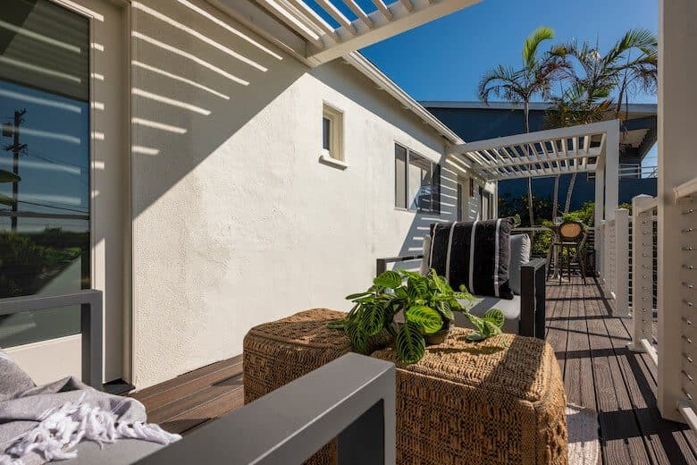 Melissa has always dreamed of having an outdoor deck attached to her bedroom. We extended her patio across the entire back of the house and replaced her bedroom window with beautiful French doors. Every morning she can now wake up, step outside, and enjoy the view.