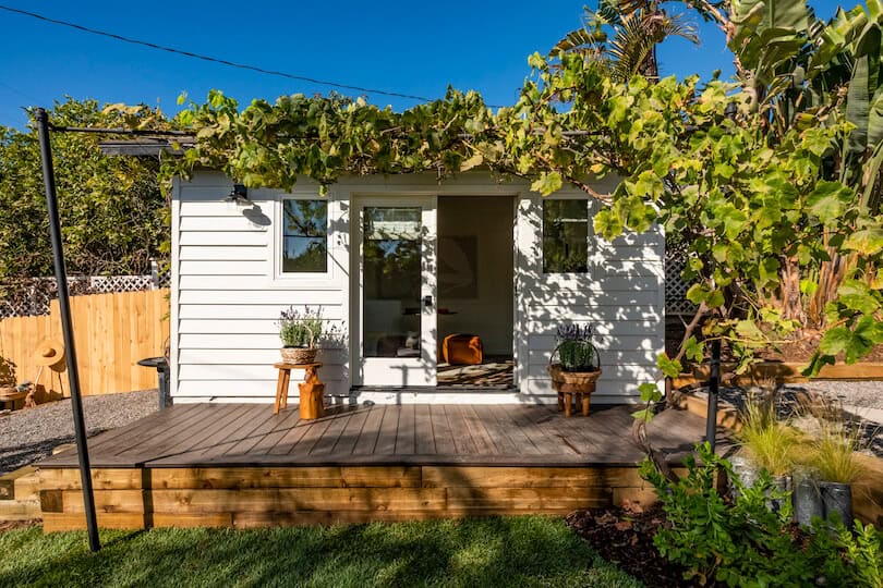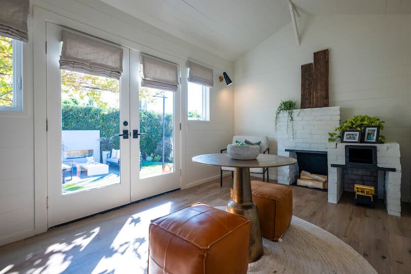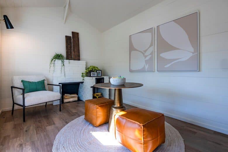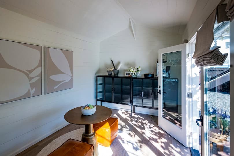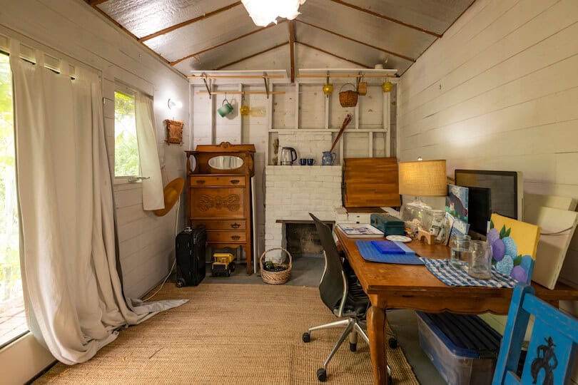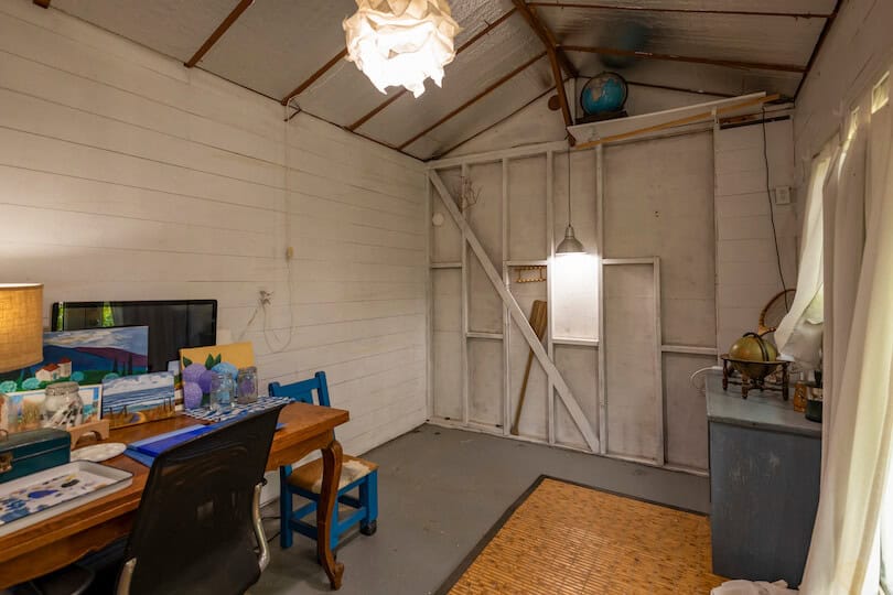 The shed was a special place for Melissa to escape and paint. While it was already cozy, we freshened it up by installing some luxury vinyl and giving it a fresh coat of paint so that it would feel more like a private, personal art studio.