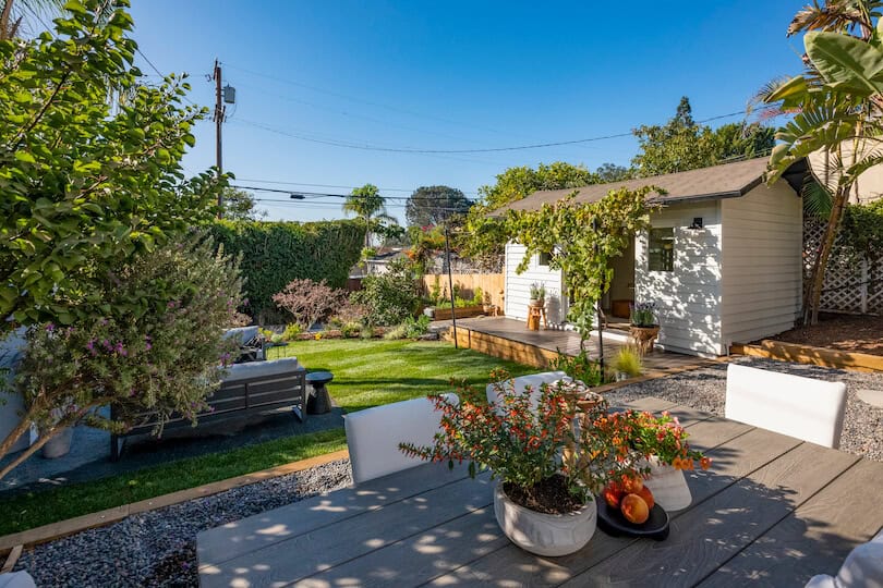 After Melissa recently recovered from two broken ankles, Kate wanted to give her a safe and special outdoor oasis where she could garden and spend time with the grandkids. We helped bring Kate’s vision for Melissa’s backyard to life, creating a low-maintenance retreat complete with an outdoor kitchen and fireplace, an updated casita that serves as an art space, raised garden beds, and a bocce ball court.