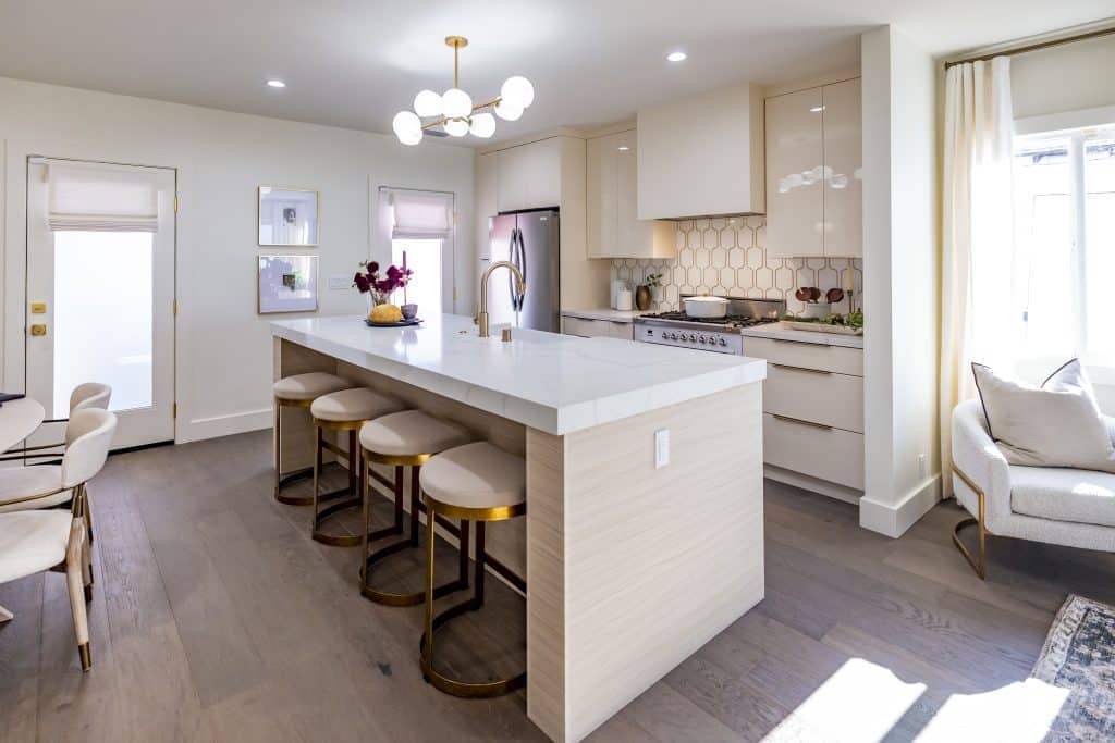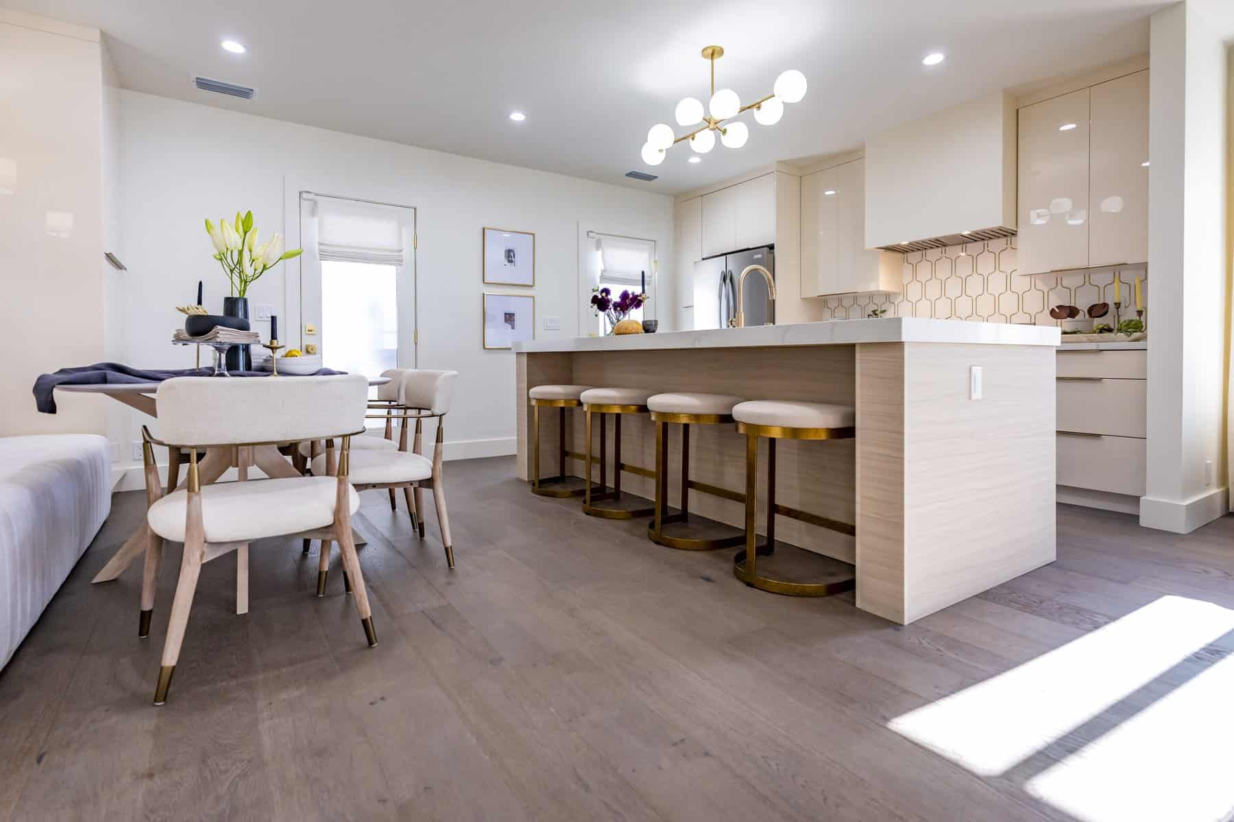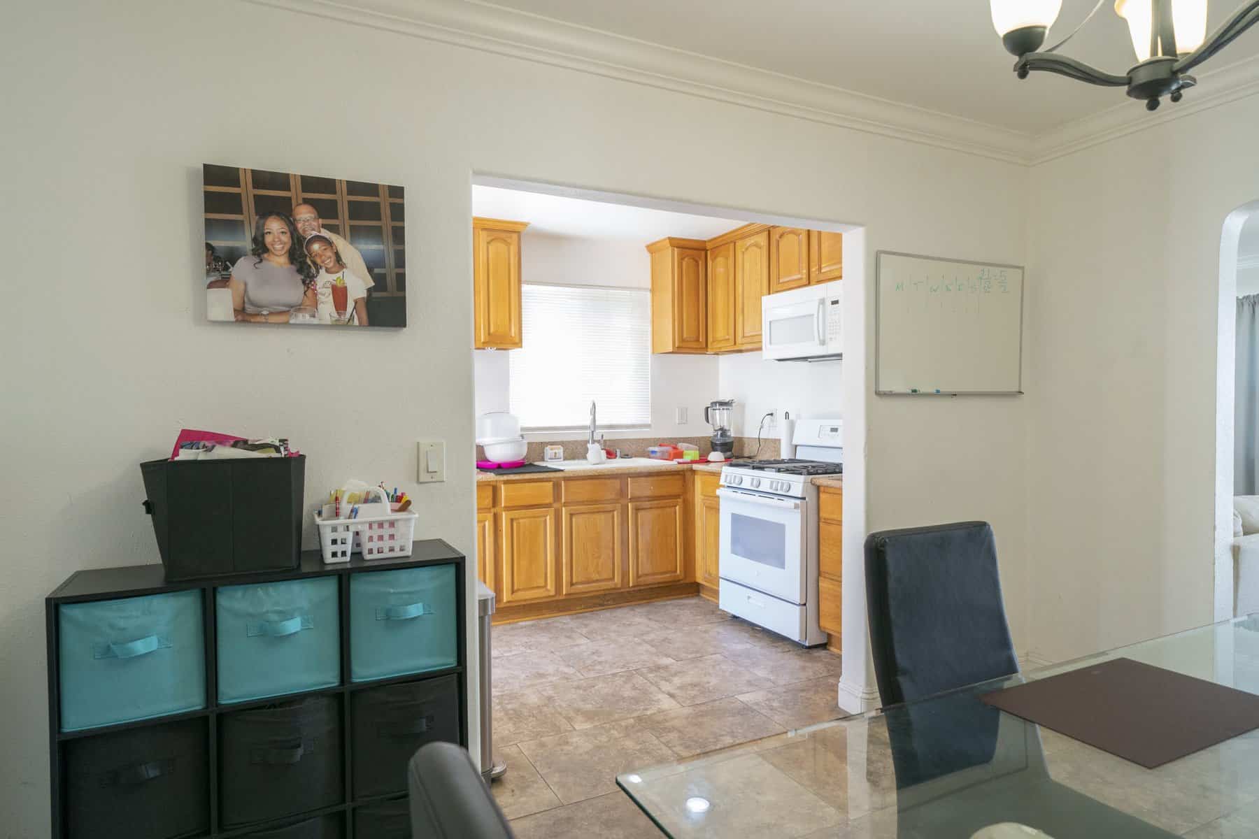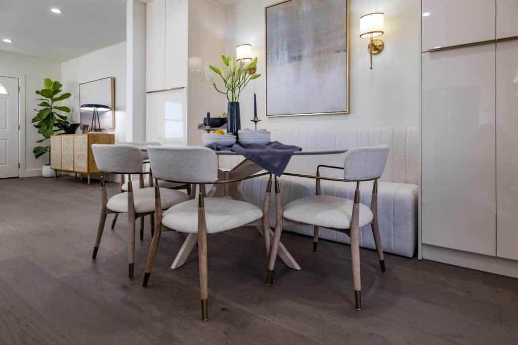 Flanked by pantry storage, the built in banquette seating provides high class dining luxury all in the comfort of Tiffany’s home. Whether she wants to host her extended family or have a relaxing night alone with her daughter, Lyric, the space will always feel both opulent and cozy.