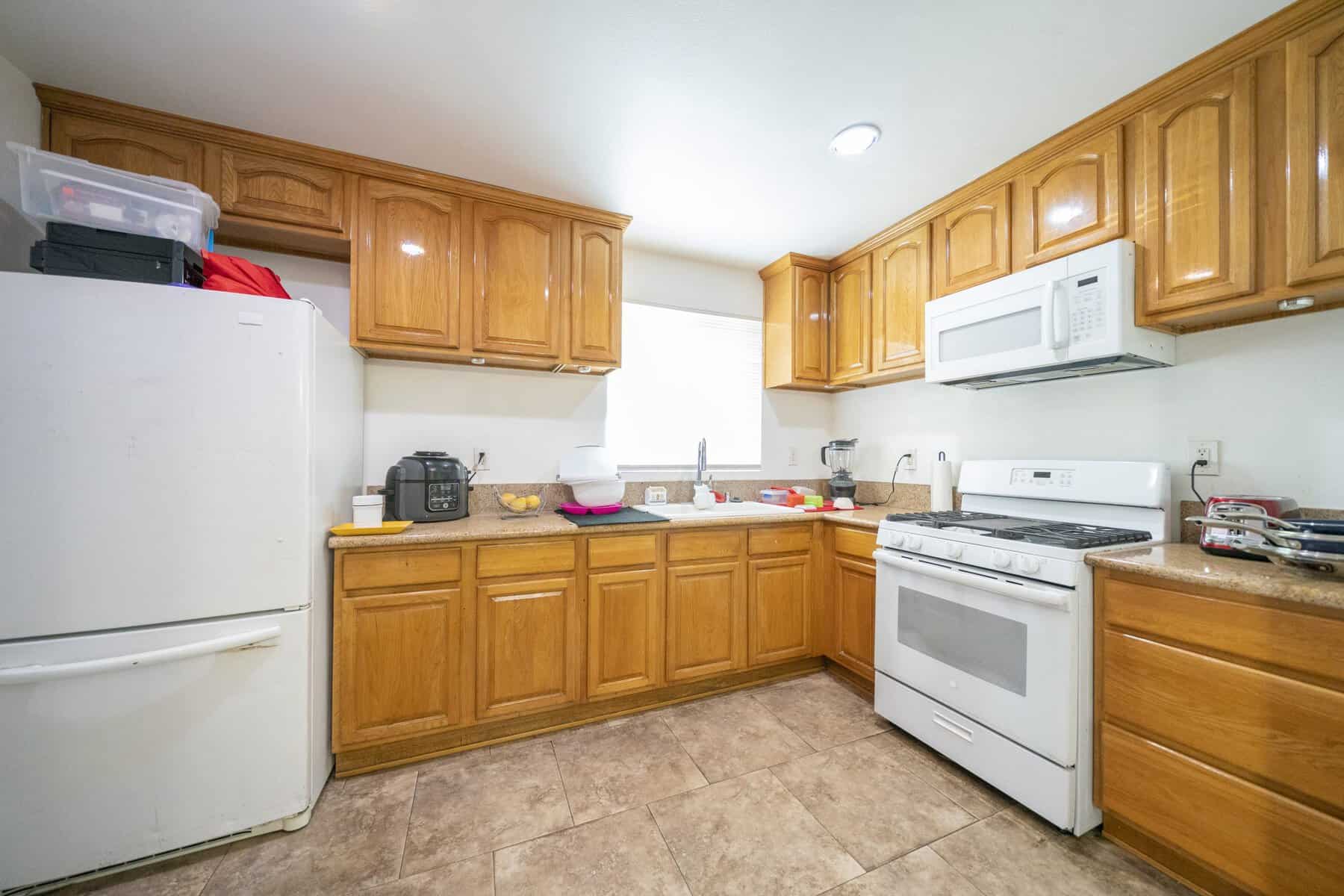 Taking out a window can be risky, but the new white countertops and marble backsplash keep the space feeling bright and lively, even without the natural lightning. Plus once it was gone, we had the room to install new custom cabinets that maximized Tiffany’s storage space.