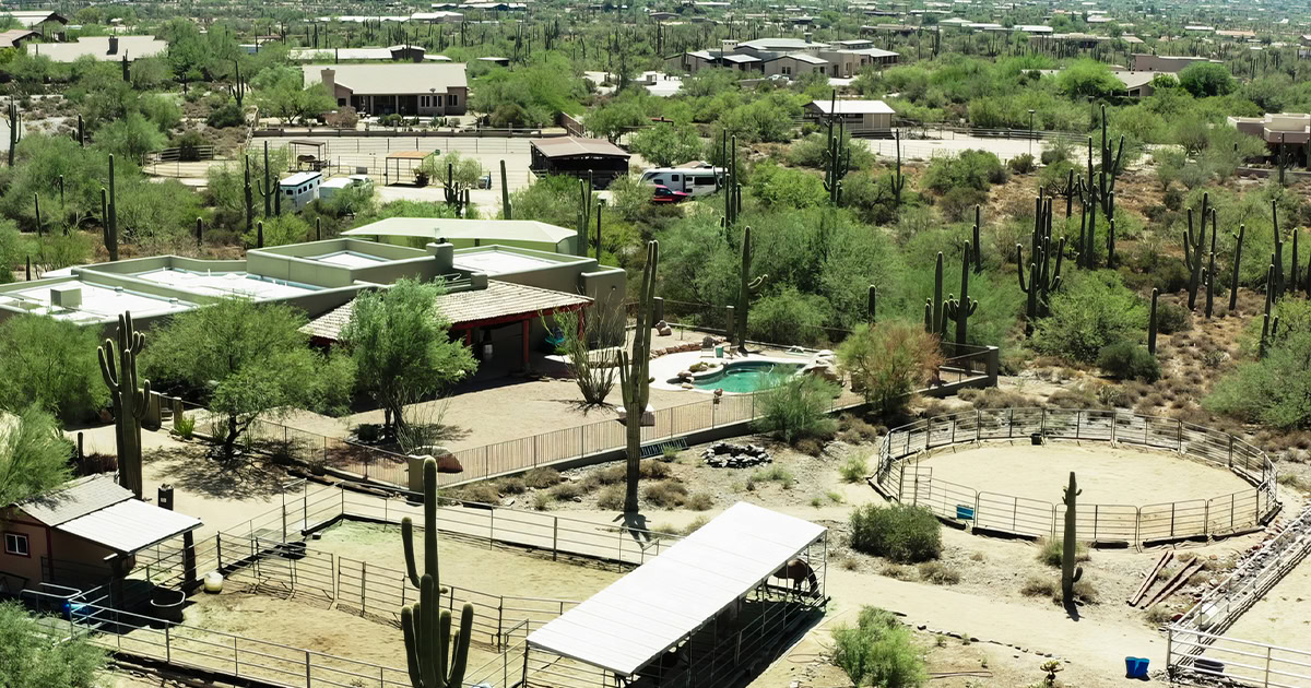Backed onto the Tonto National Forest, this property is far below their max budget—but it comes at the cost of proximity. It’s about a half hour from Cave Creek, but this one has lots of the amenities they’re looking for, including the horse stables.